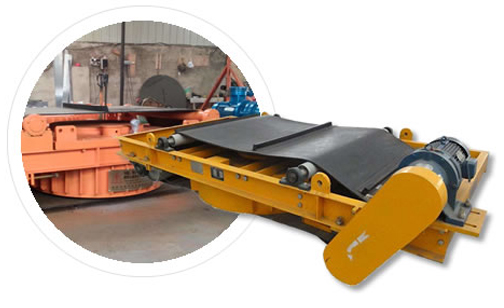 磁輥通過(guò)調(diào)速電機(jī)拖動(dòng),轉(zhuǎn)速的快慢通過(guò)調(diào)速表來(lái)進(jìn)行調(diào)節(jié),可控制磁選機(jī)的產(chǎn)量和精礦品位。礦粒經(jīng)輸送帶被送入上磁輥分選,由于錳礦的礦粒有磁性,立即被強(qiáng)磁場(chǎng)吸附在磁輥上。